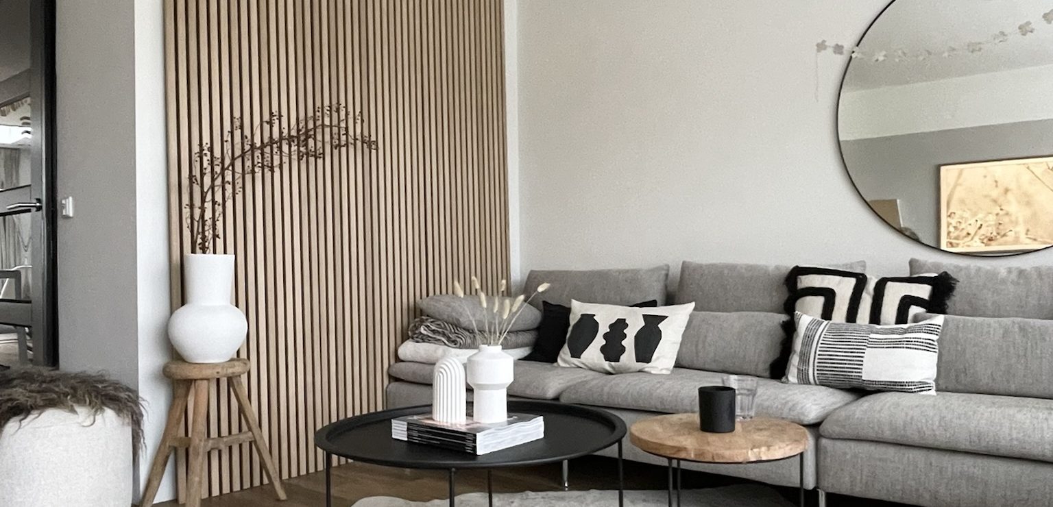 En este bonito proyecto, Sharon aplicó su toque mágico para crear un ambiente cálido y acogedor utilizando paneles Nogal. ¡Complementa perfectamente los tonos suaves del interior y es simplemente impresionante!