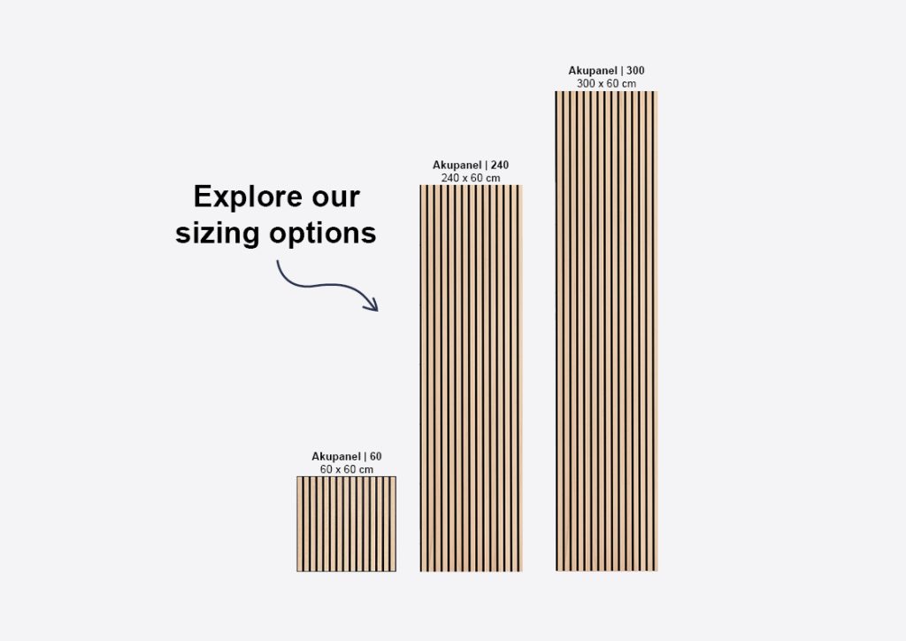 The Akupanel | 300, specially designed for spacious and open environments where every detail is important, offers a dimension of 300 x 60 cm and is available in our two most beloved colors: Classic Oak (Black Felt) and Walnut.
